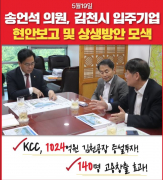 경북 김천시 송언석 국회의원은 19일, 국회에서 김천시 입주기업인 ㈜KCC 김현근 전무(본사 건재사업부장)와 김홍겸 상무(김천공장 공장장) 등..