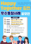 김천시는 11월 1일(화)부터 15일(화)까지 제2회 「Happy together 김천」우수동참사례 공모전 신청을 받는다.올해로 2회째인 우수..