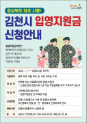 김천시(시장 김충섭)는 시민의 자부심 고취와 복리증진에 이바지하며 병역의무 이행을 격려하기 위한 목적으로 경북도내 최초로 입영지원금 지급에 관..