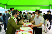 김충섭 김천시장은 30일 코로나19로 힘든 상황속에서도 최선을 다하고 있는 직원들의 노고를 격려하기 위해 시청 구내식당에서 배식 봉사를 하였다..