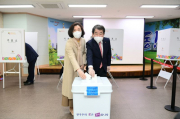 김충섭 김천시장은 제21대 국회의원선거 사전투표 첫날에 대곡동주민센터에 마련된 사전투표소를 찾아 사전투표를 했다.10일 오전 출근길에 부인 박..
