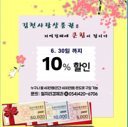김천시(시장 김충섭)가 코로나19의 장기화로 지역경기가 침체됨에 따라 민간소비 촉진과 소상공인 살리기 위해 김천사랑 상품권 10% 특별할인 판..