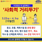김천시(시장 김충섭)는 지난 21일 코로나19 확산 방지를 위한 정세균 국무총리의 담화 시 훨씬 더 강력한 사회적 거리두기가 필요하다는 정부 ..
