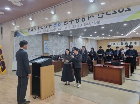 경상북도의성교육지원청(교육장 이우식)은 1월 17일(금), 2025. 1. 1. 자 신규 공무원 11명과 선배 공무원 10명이 참석하여 지방공무원 청렴 후견인제(멘토-멘티) 결연식을 개최했다.