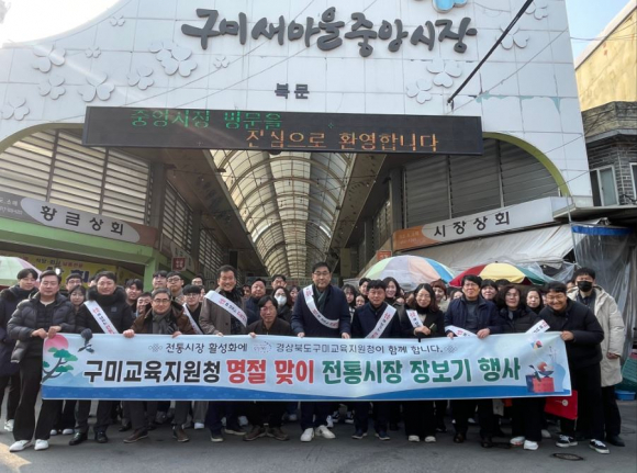 □ 경상북도구미교육지원청(교육장 남성관)은 20일 민족 고유의 명절인 설날을 앞두고 지역 경기와 전통시장의 활성화를 위하여 구미새마을중앙시장에 방문하여 설 맞이 장보기 행사를 실시하였다.