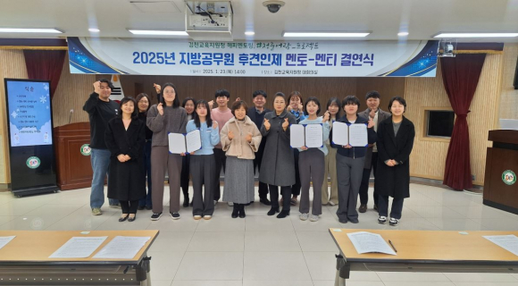 □ 경상북도김천교육지원청(교육장 모태화)은 1월 23일 오후2시 김천교육지원청 대회의실에서 신규 공무원과 선배 공무원 12명이 참석한 가운데 지방공무원 후견인제 멘토-멘티 결연식을 개최했다.