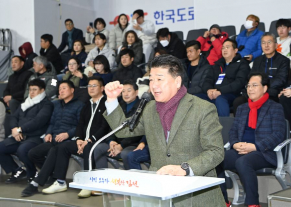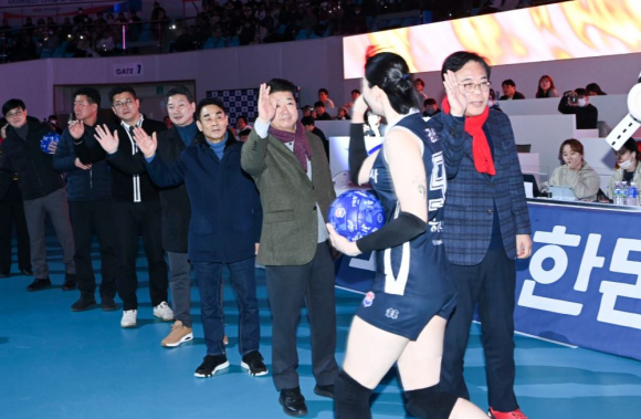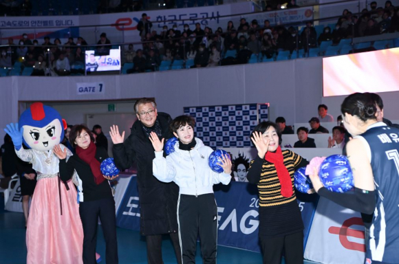 김천시의회(의장 나영민)는 1월 28일, 김천실내체육관에서 한국도로공사와 기업은행 간에 열린 배구 홈경기에서 특별한 행사를 진행했다.