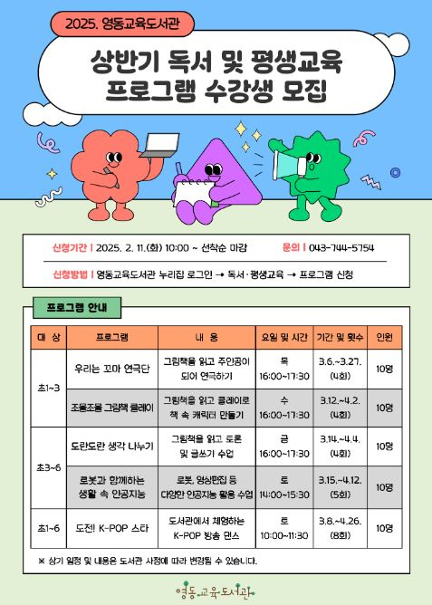 영동교육도서관, 2025년 초등 프로그램 수강생 모집