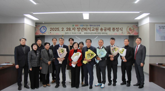 2025년 2월 19일, 금산교육지원청(교육장 이인원)은 금산교육지원청 3층 대회의실에서 2025년 2월 28일자 정년퇴직을 맞은 교원들을 위한 송공패 및 꽃다발 증정식을 가졌다. 이날 행사에는 교육계에서 오랜 세월을 바친 여섯 명의 교장과 교감, 교사가 주인공으로 등장하여 퇴임을 맞이하며 그동안의 교육 여정과 소회를 나누는 소중한 시간이 마련되었다.