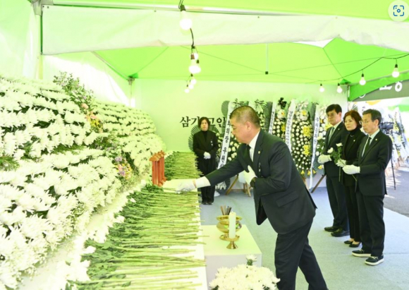 이에 김천시의회 나영민 의장을 비롯한 의원들과 사무국 직원들은 합동분향소에서 헌화 및 분향을 하며 희생자들의 넋을 기리고, 깊은 애도의 뜻을 표했다.
