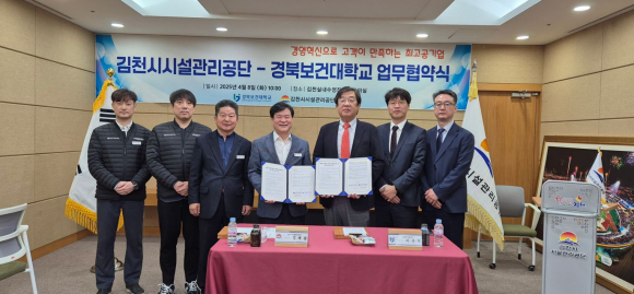 김천시시설관리공단(이사장 김재광)은 지난 4월 8일 경북보건대학교(총장 이은직)와 업무협약을 체결하였다고 밝혔다.