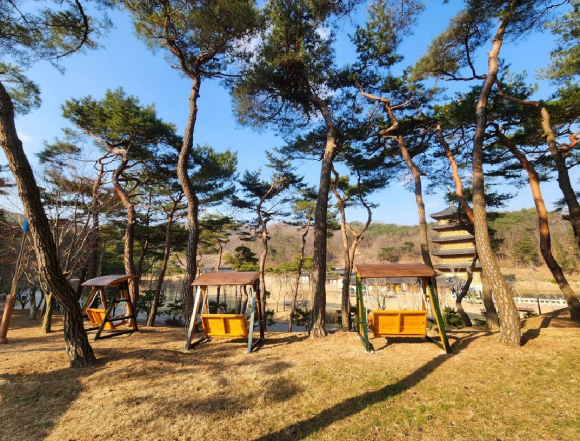 김천시 시설관리공단(이사장 김재광)은 김천시 관광명소인 사명대사공원 내 쉼터 조성을 위하여 치유의 숲과 잔디광장 경계 부분에 3개의 흔들그네형 퍼걸러를 설치했다.