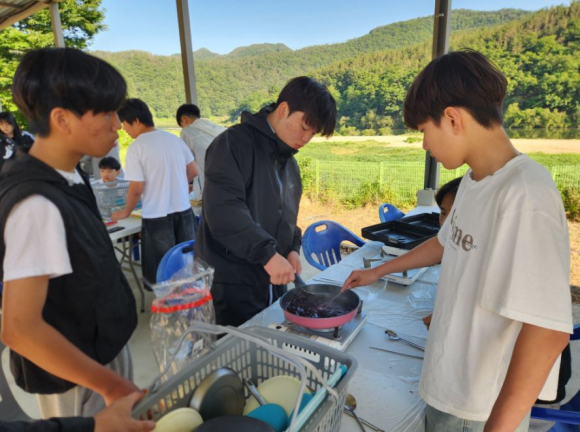 속리산중학교(교장 김성은)는 4일부터 5일까지 1박 2일 동안, 전교생을 대상으로 충북청소년수련원 옥천캠프에서‘다이나믹 옥천탐험활동 캠프’라는 주제의 자연탐험 활동 및 자기도전 성취포상제 활동을 실시했다. 첫날 학생들은 관계형성활동인‘나만의 명찰 만들기’로 자기 고유의 정체성 탐험 및 교우 탐색과 친교의 시간에 참여하며 일정을 시작하였다. 이어 오후에는 패들링교육과 수상안전교육을 철저히 이수한 후,‘금강물길탐사’에 나섰다. 학생들은 금강IC에서 안남면 종미리 잠수교까지 18km의 거리를 노를 저으며 금강 물길 탐험에 나섰다. 이튿날 아침, 학생들은 전날 저녁에 이어 자체 취사를 하며 브런치대회까지 즐겁게 마치고 금강 자연 탐사를 실시했다. 안남면사무소에서 청마리제신탑을 거쳐 금강IC까지의 총 15km의 트레킹 일정을 꼬박 소화했다. 학생회부회장 3학년 강민석 군은“친구들과 합심하여 속도를 조절하며 맑은 물살과 함께 강을 따라 흘러간다는 것이 정말 행복했고, 자연의 넓은 품에 안겨 친구들과 걸으니 힘들어도 재미있었다. 평소에 바라만 보던 산과 강이 아니라, 직접 그들의 집으로 초대된 느낌이다. 자연과 부쩍 친해진 것 같고, 환경 보호의 필요성을 더 절실히 느끼게 되었다.”는 소감을 전했다. 정기 생활안전기획부장은“자연 환경 속에서 생태 변화에 대한 적응력을 익히고, 새로운 활동에 도전하고 성취하는 가운데 학생들이 많은 자신감과 진취성을 얻게 되는 효과가 크다.”라며 자연체험활동의 중요성을 강조했다. |