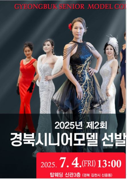 ‘제2회 경북 시니어모델 선발대회’가 오는 7월 4일 김천시 탑웨딩 신관에서 열린다. 당초 4월 18일 개최 예정이었으나, 경북 지역 산불과 대통령 선거 등의 영향으로 일정이 연기됐다.