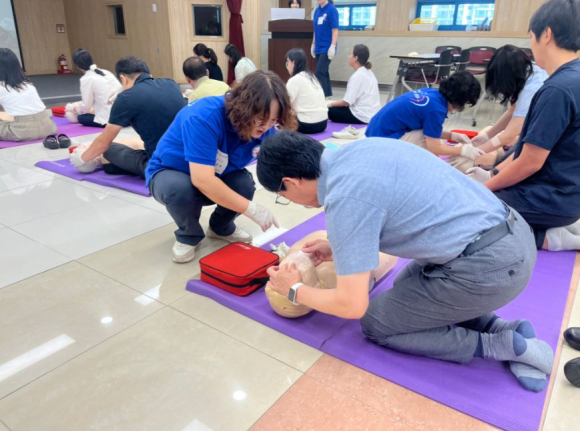 □ 이번 교육은 반복적인 심폐소생술 등 응급처치 교육을 통해 일상생활 속에서 발생할 수 있는 심정지나 긴급 상황에 대처하는 능력을 향상시키기 위해서다.