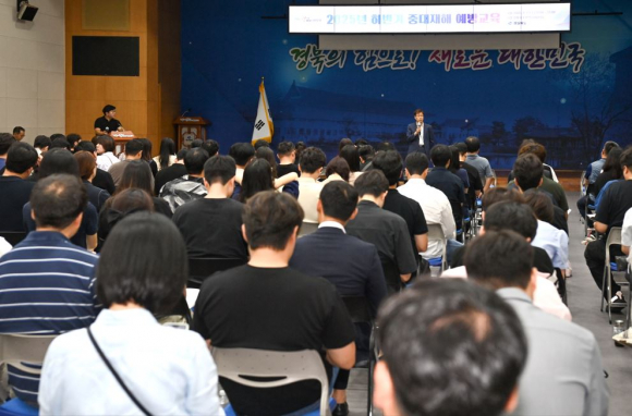 경상북도는 17일 도청 화백당에서 도 본청, 시군, 출자·출연기관 직원 등 250여 명을 대상으로 하반기 2025년 중대재해 예방 교육을 했다.