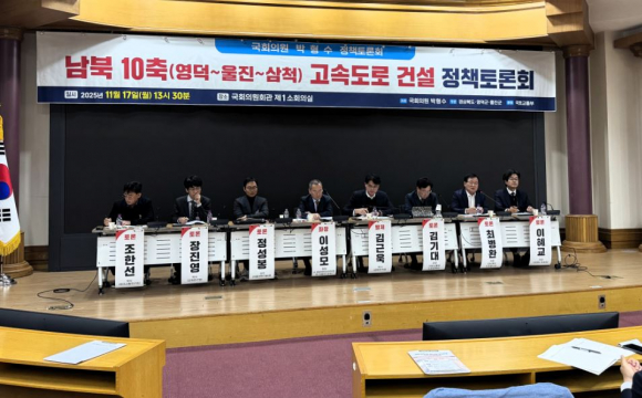 이번 토론회에는 주최자인 국민의힘 박형수 국회의원을 비롯해 이만희 국회의원, 최은석 국회의원, 이상휘 국회의원, 김종양 국회의원, 김은혜 국회의원, 김대식 국회의원, 강승규 국회의원, 김광열 영덕군수, 손병복 울진군수 등 150여 명이 참석해 영덕~삼척 간 고속도로 건설에 대한 높은 관심을 나타냈다. 또, 김근욱 경북연구원 부연구위원이 발제자로 나서, 남북 10축(영덕~삼척) 고속도로 건설의 필요성과 시급성에 대해 심도 있는 발표를 진행했다. 김근욱 부연구위원은 “남북 10축은 대한민국인 수소경제로 가는 길목의 물류 동맥이자 에너지 안보 축이며, 남북 10축의 완성은 국토 균형의 완결이자, 환동해안권 도약의 출발점”이라고 강조했다.