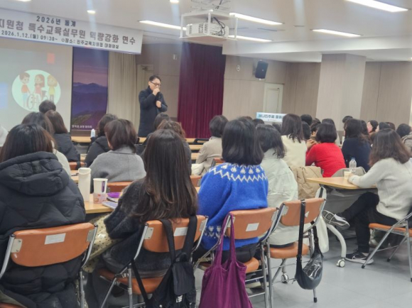 진주교육지원청(교육장 김경규)은 1월 12일 관내 초‧중‧고‧특수학교에 근무하는 특수교육실무원과 특수교육지원 특수행정실무원을 대상으로 2026년 동계 특수교육실무원 역량강화 연수를 실시하였다.