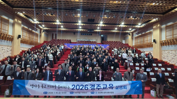 경상북도경주교육지원청(교육장 황영애)은 2026년 1월 16일(금) 오전 10시, 경주시 화랑마을 기파랑관에서 「2026 경주교육 설명회」를 개최하였다.