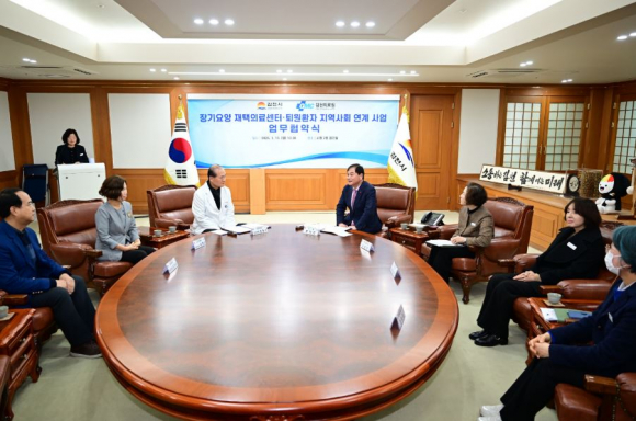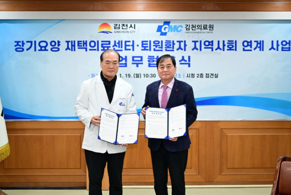 김천시(시장 배낙호)는 1월 19일 김천의료원과 함께 ‘장기요양 재택의료센터 시범사업’과 ‘퇴원환자 지역사회 연계 사업’ 추진을 위한 업무협약을 체결했다.