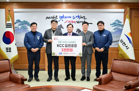 김천시(시장 배낙호)는 지난 19일, ㈜KCC 김천공장(공장장 한주희)으로부터 희망2026나눔캠페인 성금 3천만 원을 전달받았다고 밝혔다.