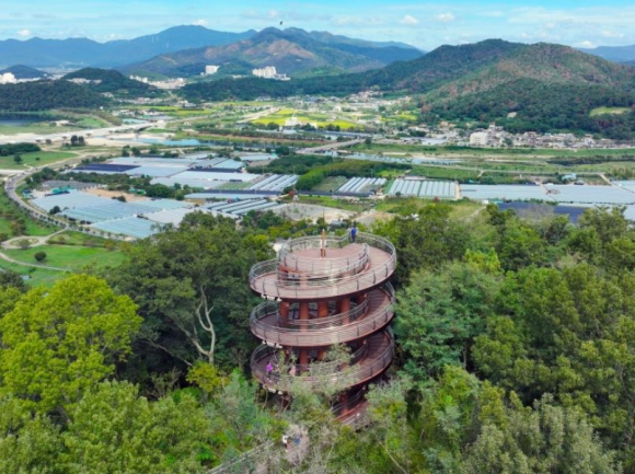 용두산생태공원은 수변산책로와 달팽이전망대가 어우러진 치유 공간이다. 전망대에 오르면 밀양 시내 전경이 탁 트인 시야로 펼쳐져, 산책의 끝에 보상을 주는 듯한 기분을 느낄 수 있다. 남녀노소 누구나 부담 없이 오를 수 있어 가족 단위나 혼행객 모두에게 추천된다.