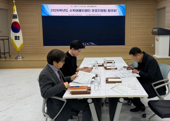 □ 울릉교육지원청(교육장 이동신)은 지난 9일(목) 본관 3층 회의실에서 2026학년도 수학여행지원단 운영지원팀 업무협의회를 실시하였다. □ 이번 수학여행지원단은 교육청 소속 위원 4명 이외에 각급 학교에서 다년간 수학여행 현장경험이 풍부한 3명의 교원위원과 시설, 교통, 청소년활동 등에 경험이 풍부한 유관기관 담당자 등 총9명의 전문가 그룹으로 구성되었다. □ 이번 협의회에서는 특히 국외수학여행 예정 학교의 운영계획안을 바탕으로 올해 수학여행 운영 계획 수립, 추진 절차, 경비 집행 등 운영 적정성에 관한 제반 사항을 점검하였다. □수학여행지원단은 2027년 2월까지 현장체험학습 운영 지침에 맞는 체험학습 운영 여부를 확인하고, 지원이 필요한 학교에 대해서 운영 전반에 관한 사항(준비, 계약, 운영, 평가 등)을 지원하는 등 현장에 실질적으로 필요한 지원을 통해 학교 담당자의 업무를 경감하고 학생 안전사고를 예방하기 위해 노력할 예정이다. □ 울릉교육지원청 이동신 교육장은 “수학여행지원단의 컨설팅 활동이 학교에서 현장체험학습을 계획하고 운영하는데 실질적인 도움이 될 수 있도록 하겠다. 아울러 운영지원팀 모두 학생 안전사고를 예방에 대한 소명의식을 가지고 힘써주기를 바란다.”라고 당부하였다. |