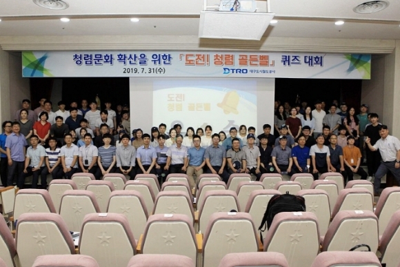 |  | | | 〈도전! 청렴 골든벨 퀴즈대회〉 | | [밝은미래신문=뉴스팀]대구도시철도공사(사장 홍승활)는 지난 7월 31일(수) 본사 지하 강당에서 직원 100여명이 참석한 가운데 전사적 청렴의식 함양과 청렴문화 확산을 위해 「도전! 청렴 골든벨」 퀴즈대회를 개최했다고 밝혔다.