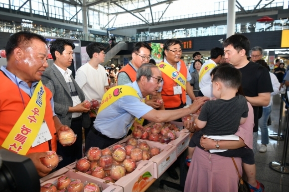 [밝은미래신문=뉴스팀]청도군(군수 이승율)은 지난 1일 부산역사내에서 우수 농특산물인청도복숭아의 우수성 홍보를 위해 “2019 사랑한데이 ♡ 청도복숭아 홍보” 행사를 가졌다.