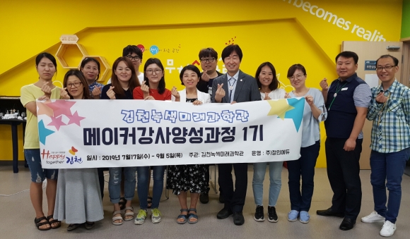 김천시(시장 김충섭)는 김천녹색미래과학관에서 2019년 7월~9월 3개월간 무한상상실 메이커 강사 양성반을 개설 운영하여 정규과정을 마친 교육생에게 수료증을 전달했다.