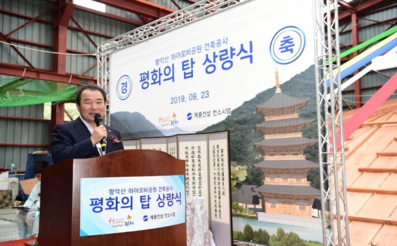 황악산 하야로비공원 평화의 탑 상량식 거행