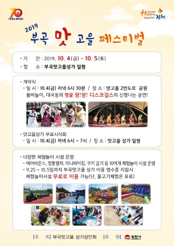부곡맛고을상가상안회에서는 10월 4일∼5일 2일간 2019년 부곡맛고을 페스티벌을 개최한다.