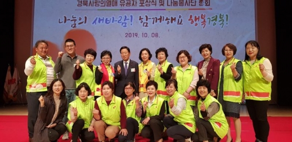 김천시 사랑의열매 나눔봉사단(단장 박유순)은 지난 15일 경북도청에서 개최된 ‘2019년 경북 사랑의열매 유공자 포상식 및 나눔봉사단 총회’에서 우수봉사단과 우수봉사단원(총무 최성임) 수상의 영예를 안았다.