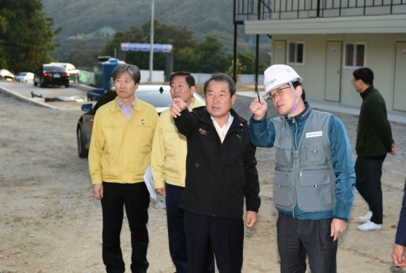 김충섭 김천시장은 현장을 점검한 후 시공중인 현장근로자 및 관계자들의 노고를 격려하고 안전사고 예방 및 견실시공이 되도록 현장 관계자에게 당부했다.