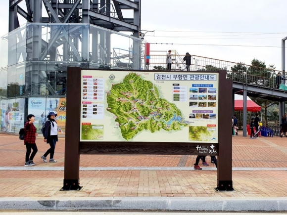 김천시 부항면(면장 장성윤)은 관내 주요 관광지와 식당, 펜션 등의 정보가 담긴‘부항면 관광안내판’을 부항댐 레인보우 짚와이어 부지 내 설치했다고 밝혔다. 읍면동 단위에서 자체적으로 관광안내지도를 제작하여 안내판을 설치한 것은 김천시에서 최초다. 부항면은 부항댐을 중심으로 출렁다리, 짚와이어, 물문화관 등 기존의 관광인프라 외에도 부항면 지좌리 일원에 조성 중인 생태체험마을과 수변데크로드, 경관조명사업 등이 진행되며 전국 최고의 체류형 관광명소로 거듭나고 있다.