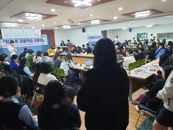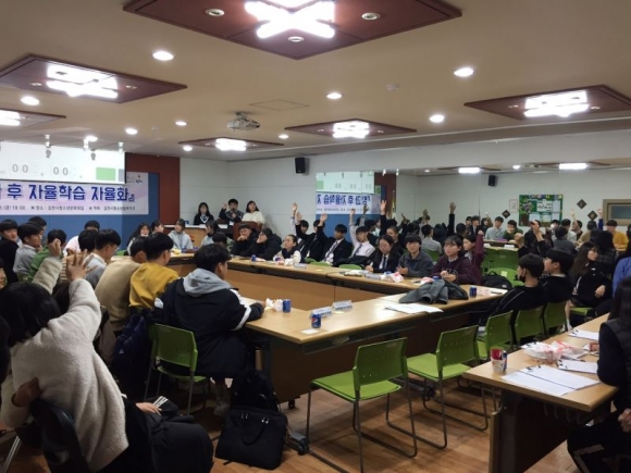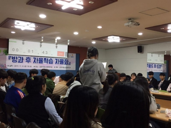 김천시 청소년참여기구(제14기 청소년참여위원회 및 제7기 청소년운영위원회)는 2019.11.08.(금) 청소년문화의집에서 방과 후 자율학습 자율화를 주제로 청소년 자유토론회를 개최했다.