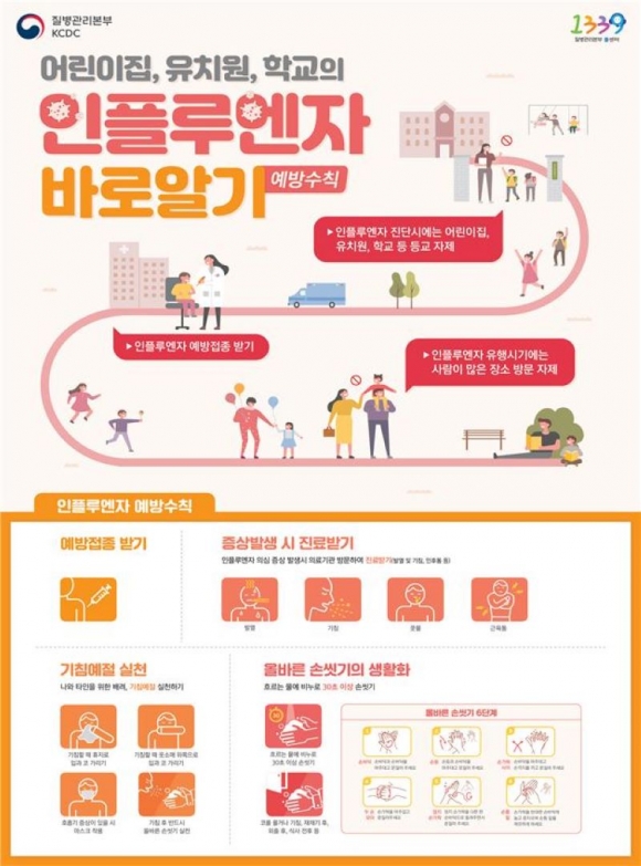 유행기간 동안 영유아 보육시설, 학교 등 단체 생활을 하는 시설은 인플루엔자 예방 관리를 강화하고, 인플루엔자 진단 시 등원·등교를 자제해야 한다.