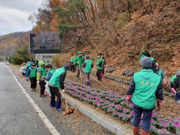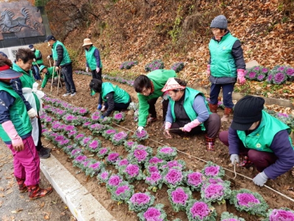 대항면 새마을협의회(회장 이승태, 부녀회장 박외선)는 11월 18일 괘방령 연도변에 겨울을 맞이하여 아담하고 예쁜 꽃밭을 조성하였다.