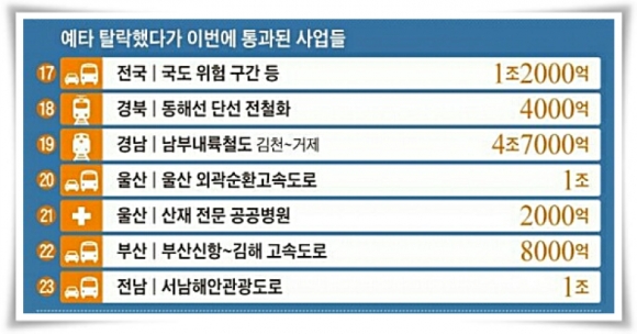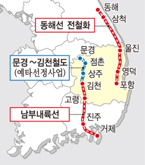 각 사업은 올해 국가 균형발전 프로젝트의 일환으로 지역산업을 뒷받침할 기반시설(인프라)을 확충하고 전국권역을 연결하는 광역 교통망을 구축하는 내용으로 시행된다. 그동안 철도로 접근하기 어려웠던 영남 내륙지역에 고속철도를 직접 건설해 낙후지역의 교통 선택가치를 개선하고 산업과 관광 활성화에도 기여할 것으로 예상된다.