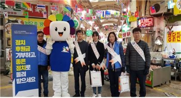 김천시선거관리위원회는 11월 25일 전통시장 장날을 맞아 황금시장 일대에서 정치후원금 기부문화 조성 등을 위한 홍보 캠페인을 실시했다고 밝혔다.