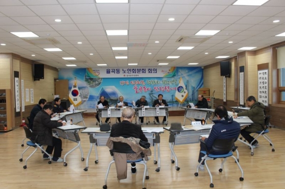 율곡동(동장 신장호) 노인회분회는 지난 9일 주민센터 2층 회의실에서 총회를 개최했다. 이날 회의는 관내 12개 경로당 회장들이 참석한 가운데 오명근 분회사무장의 사회로 2019년 율곡동 노인회분회 결산 보고, 2020년 노일일자리 사업 홍보, 경로당 회원 중 김천시 미전입자 전입 독려 방법 등에 대해 논의하였다.