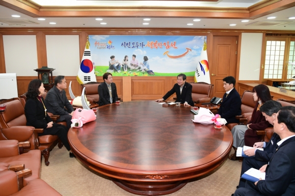 김천시(시장 김충섭)는 지난 13일, 기술과 경영혁신으로 관련 업계에서 지역경제발전에 크게 이바지한 공로를 인정받아 금번 중앙 및 도단위에서 수상하게 된 3개 기업에 대해 축하의 시간을 가졌다. 제1회 경상북도스타트업혁신대상에 수상의 영광을 안게 된 농업회사법인(주)푸드팩토리와 제56회 무역의 날, 중앙포상격인 3백만불 수출탑을 수상한 신농(주), (주)제이에스통상 관계자와 함께 금번 수상의 결실을 축하하고 앞으로 지역 대표 기업으로 성장할 수 있도록 경제도시 김천 조성의 중추적인 역할을 당부했다.