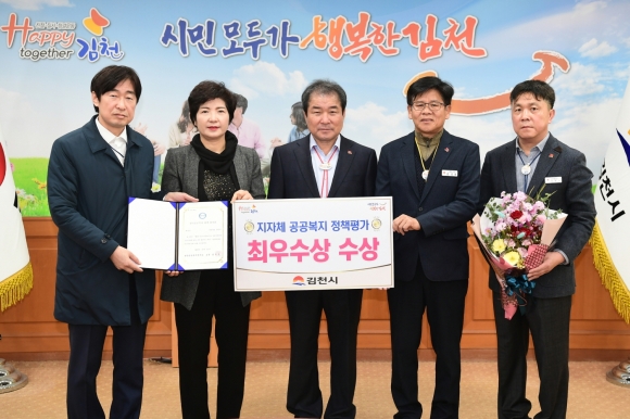 김천시(시장 김충섭)는 지난 12. 11(수)에 한국공공복지연구소에서 주관․ 주최하는 제1회 지방자치단체 공공복지 정책평가에서 최우수상 기관표창을 수상했다.