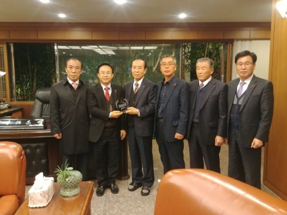 출향인사의 아낌없는 고향사랑에 지역주민들의 고마운 마음 전해 - 어모면(면장 : 김영우)은 지난 12월13일 김영우 어모면장 진기상 시의원, 임영식 체육회장, 신외철 새김천농협장, 다남리 이웅화 노인회장과 함께 부산의 ㈜파크랜드 본사를 직접 찾았다. 이날 ㈜파크랜드 방문은 그동안 고향사랑에 대한 감사함을 지역주민을 대표하여 지역기관단체장들이 이병걸 회장을 면담하고 앞으로도 지속적인 지원과 협조를 전했으며 이에 이병걸 회장은 어모면 발전을 위하는데 미력하나마 지원과 협조를 아끼지 않겠다고 화답하였다.