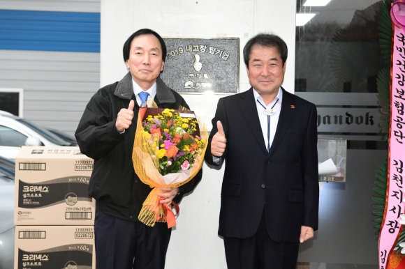 김천시(시장 김충섭)는 기술 혁신과 미래 성장 지향적인 중소기업을 발굴하고 표창하는 ‘2019년 내고장 탑기업’으로 선정된 (주)한독에서 지난 17일 현판 제막식을 가졌다.