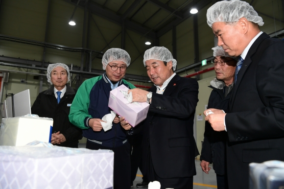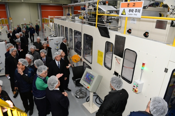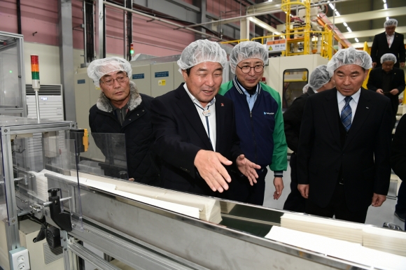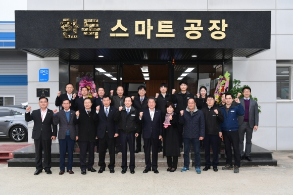 우선 현판 제막을 시작으로 업체 현황 및 기업 강점을 간략히 소개하고 김정호 대표의 안내에 따라 공장 내부 자동화 설비를 직접 둘러보면서 현장 직원들의 노고를 격려하는 시간을 가졌다.
