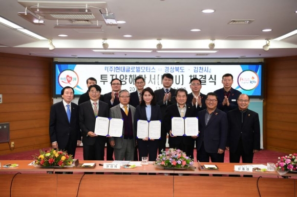 김충섭 김천시장은 13일 ㈜현대글로벌모터스와의 투자양해각서 체결식 자리에서 “‘김천에 투자하면, 반드시 성공한다.’는 신념과 확신을 드릴 수 있도록 하겠다. 우리시에서 투자한 기업들이 아시아를 넘어 글로벌 브랜드기업으로 성장하기를 기대한다.”고 말하며, “공장등록 등 인·허가 간소화 및 내년 상반기 중 착공이 가능하도록 기반시설을 포함한 행정적 지원을 제공하겠다.”는 뜻을 밝히기도 했다.