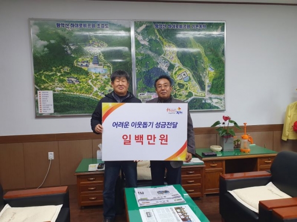 김천시 대항면 구명철 (대항면 운수1리 이장)은 대항면사무소를 방문하여 어려운 이웃에게 써달라며 100만원의 불우이웃돕기 성금을 기부하였다.