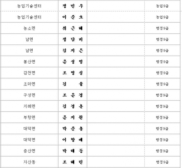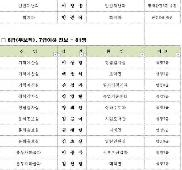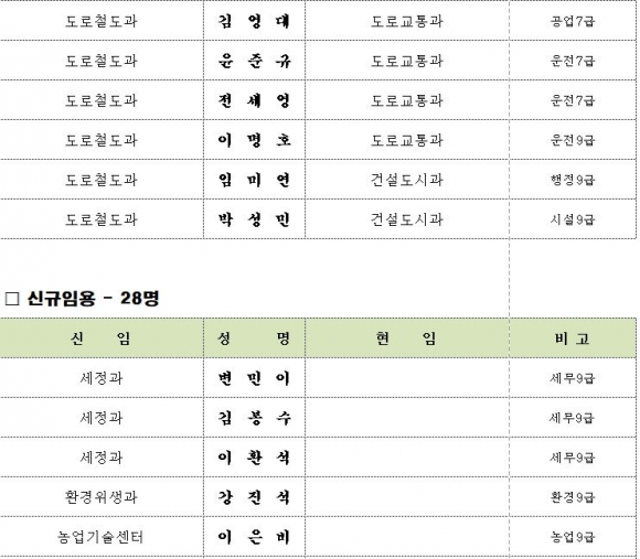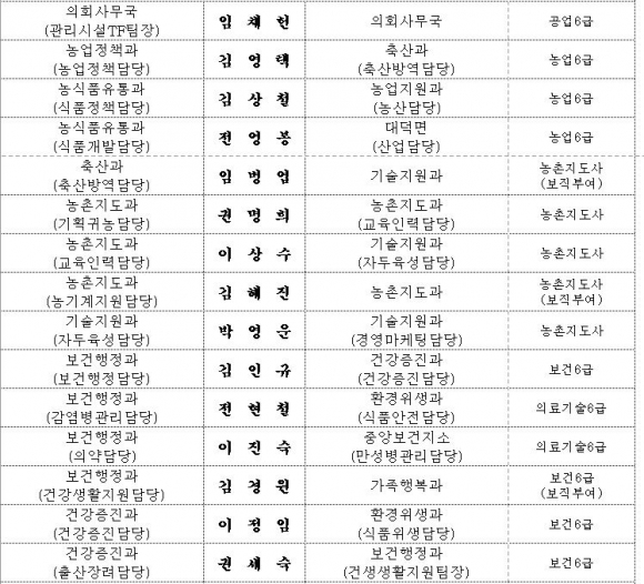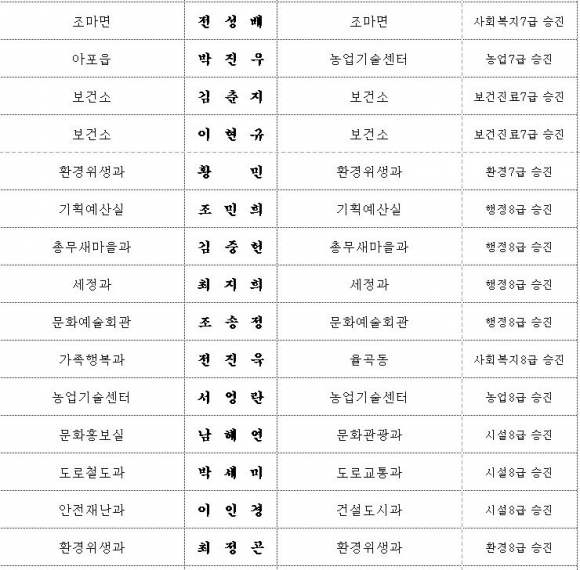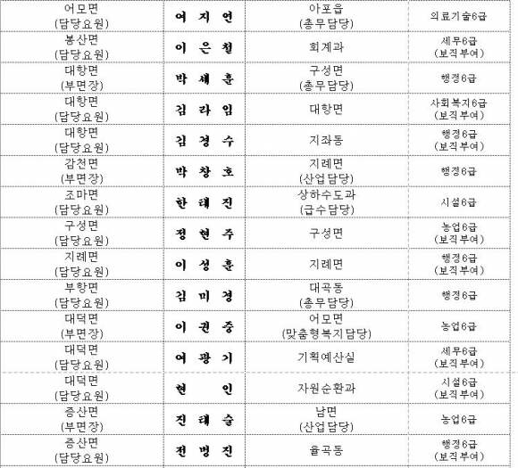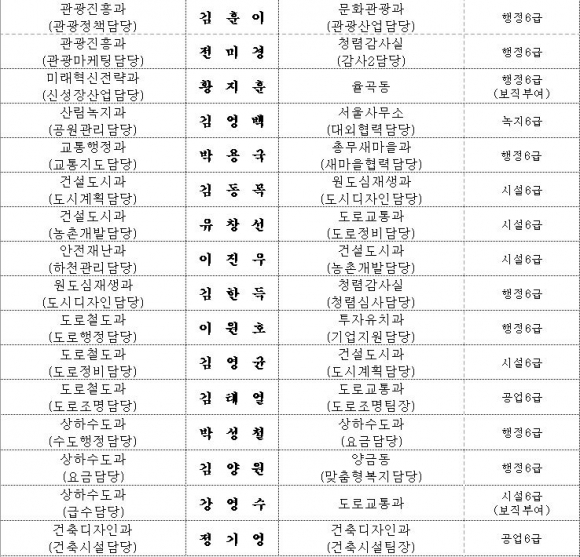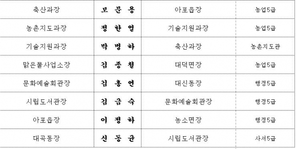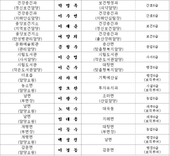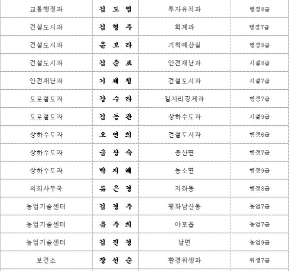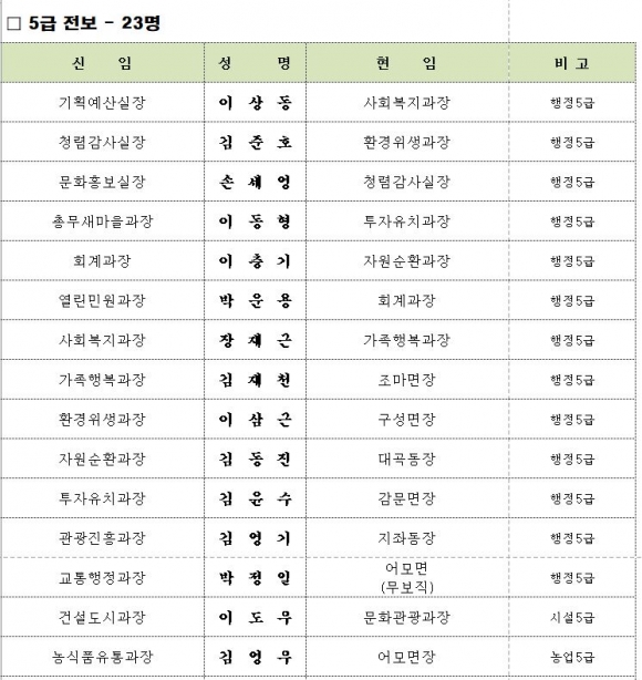김천시 인사이동 조서 2020년 01월01 일자