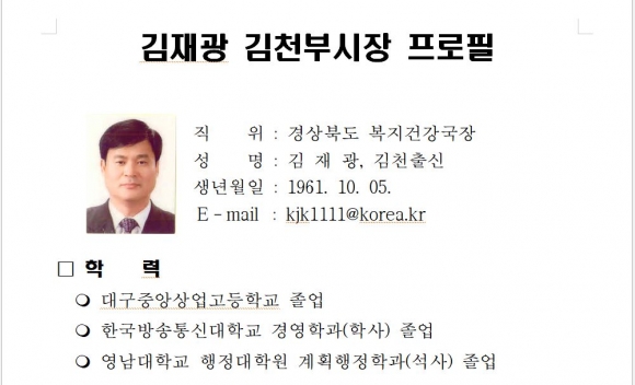 저는 오늘부터 김천시 부시장이라는